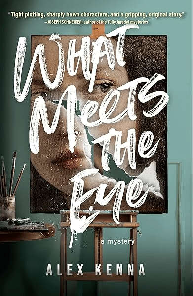 One can hardly imagine my admiration and delight as I read Alex Kenna’s fine and refreshingly original novel, What Meets the Eye. One thing that sets this book above—far above—the vast majority of mysteries is the symbolic connection it draws between two central characters–a cop-turned-P.I. named Kate Myles, and a brilliant artist named Margot Starling. Kenna sets them up as linked opposites, each a very smart and driven woman struggling to succeed in a dangerous (and largely male-dominated) world. Both are driven by a deep outrage at the injustice they see around them. And both have some dark history.